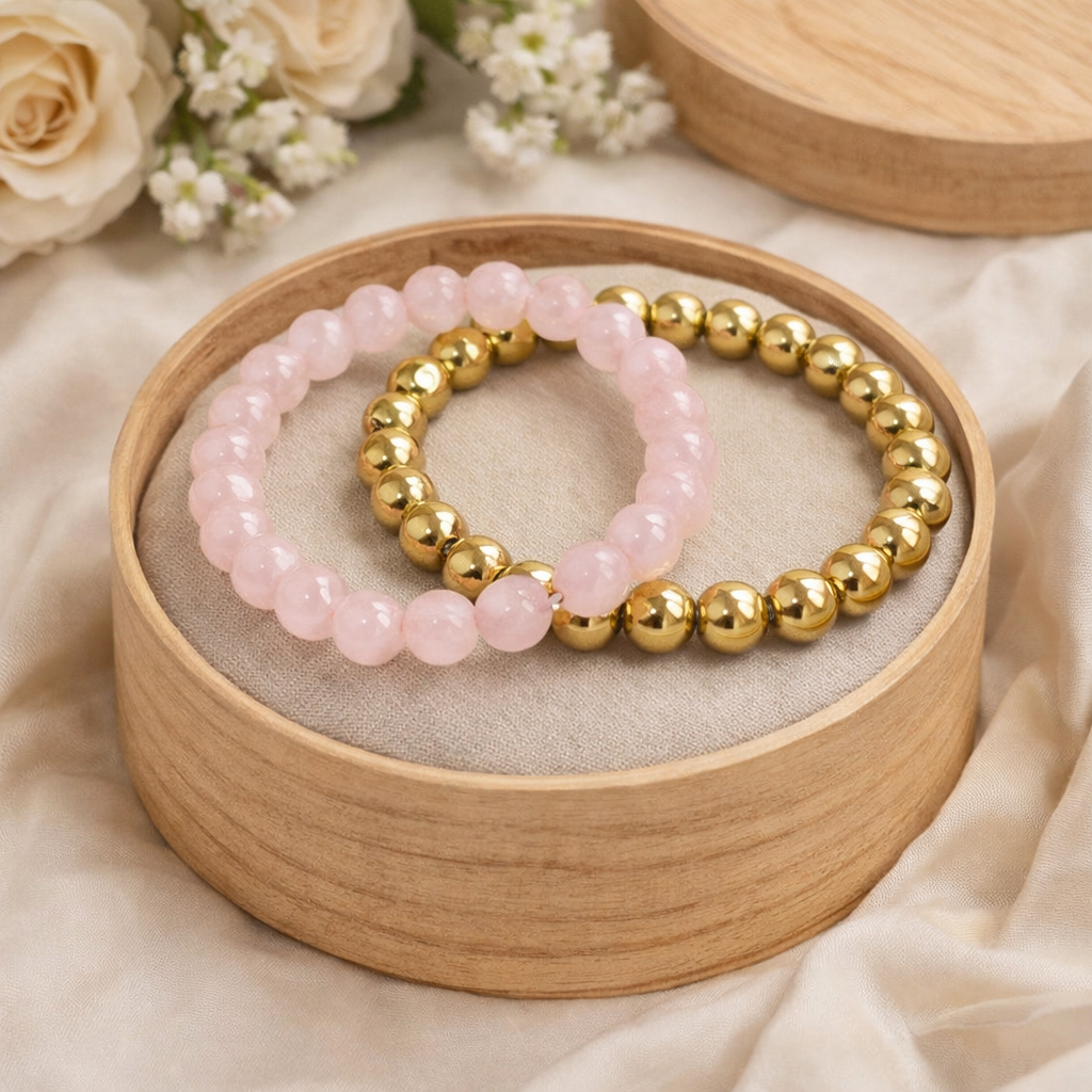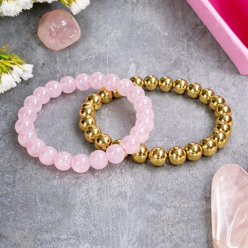 Celebrate a bond where love meets strength with our Rose Quartz & Golden Pyrite Couple Bracelet Set—crafted for couples who believe in growing together. This meaningful pairing blends emotional warmth with confidence and protection, making it a perfect gift for Valentine’s Day or any special occasion.